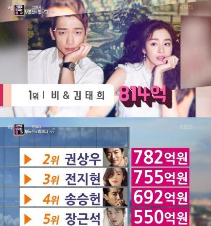去年韩媒做过调查,Rain与金泰希共同拥有的房地产就高达814亿韩元,相当惊人!登上南韩房产富翁排行榜第一的位置。